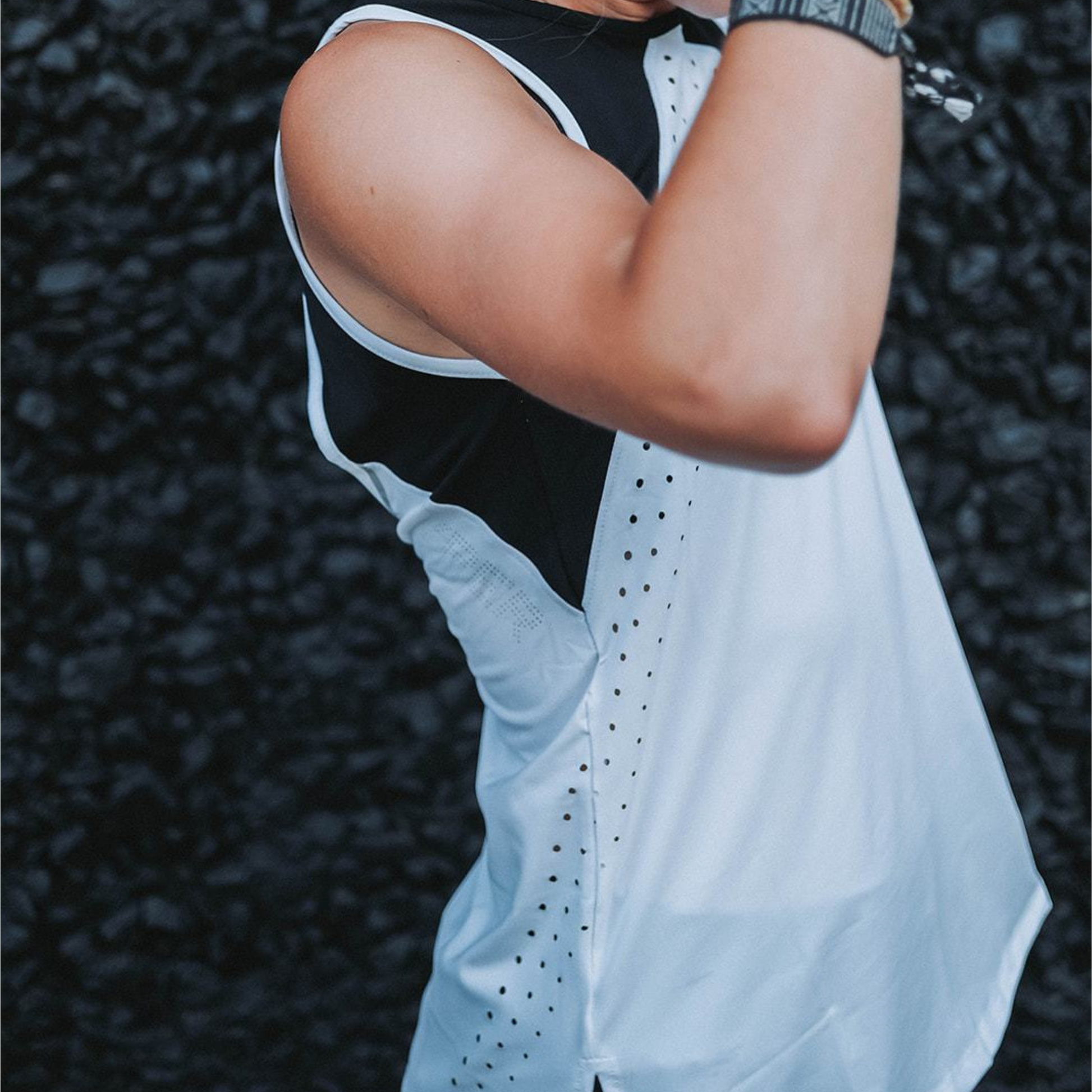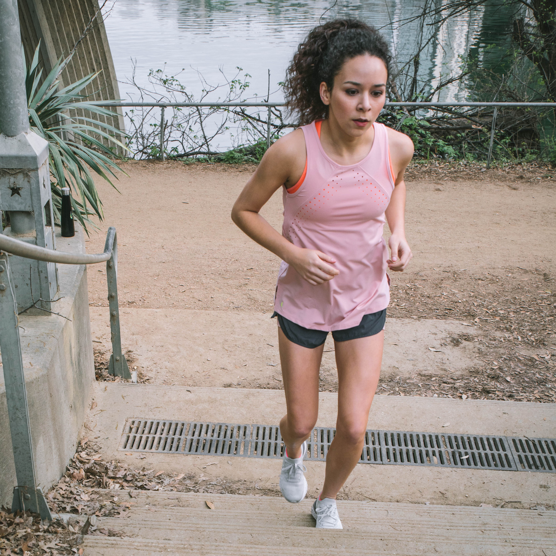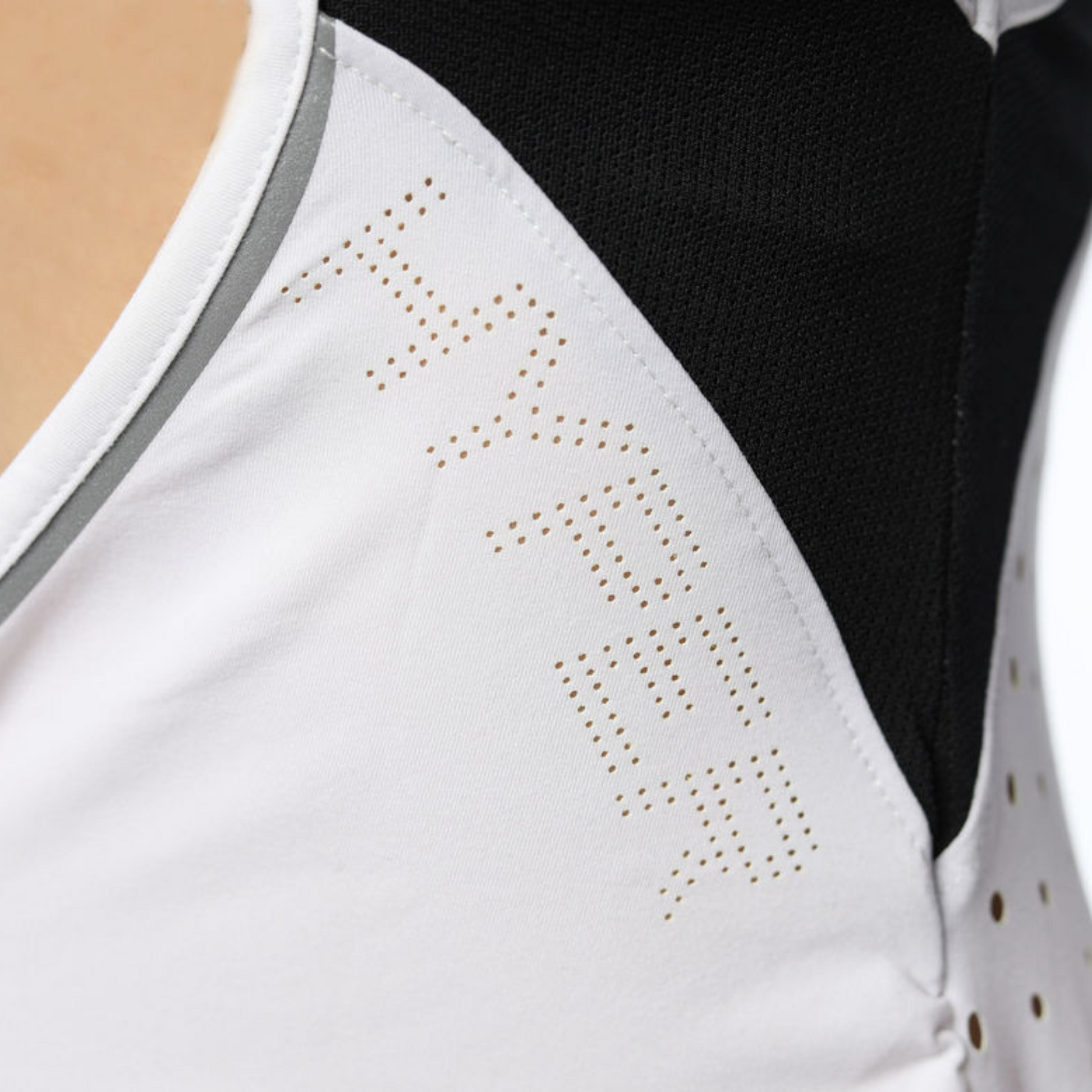 Designed to endure intense workouts out in the Texas heat, this tank features mesh inserts along the shoulders and armholes for enhanced ventilation. Perforations ascend along the neckline and side seam down through the back to give it a free-flowing feel.